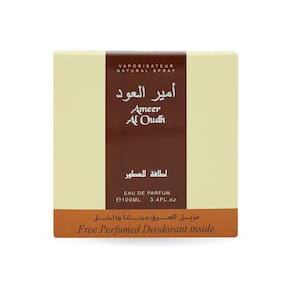 Conjunto de 2 peças Lattafa Ameer Al Oudh para unissex (spray Eau de Parfum de 3,4 onças e spray desodorante de 1,7 onças) — Este conjunto acessível contém 3,4 onças de spray de Eau de Parfum e 1,7 onças de spray perfumado — Ameer Al Oudh da Lattafa Perfumes é uma fragrância âmbar para mulheres e homens com desodorante Eau de Parfum - Notas principais: oriental, açafrão, mirra, framboesa — Notas de coração: sândalo, amadeirado, jasmim, lilás, cravo — Notas de base: almíscar, cedro, âmbar, sândalo, doce, baunilha — Fragrância oriental Eau de Parfum de longa duração