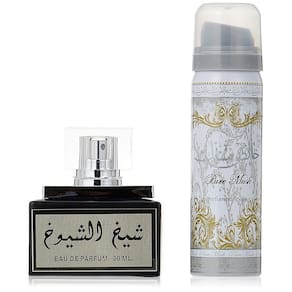 Conjunto de 2 peças Lattafa Perfumes Sheikh Al Shuyukh Black para unissex, (1,7 onça de spray de perfume mais 1,7 onça de spray desodorante) - Conjunto de 2 peças