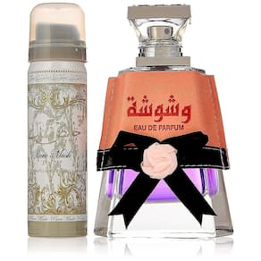 Conjunto de 2 peças Lattafa Washwashah para mulheres, (spray Eau De Parfum de 3,4 onças + 1,7 spray desodorante) - Conjunto de 2 peças Lattafa Washwashah para mulheres (spray Eau De Parfum de 3,4 onças + 1,7 spray desodorante) - NOTAS DE FRAGRÂNCIA: - Notas altas de framboesa, laranja amarga e pimenta rosa, ao lado - Notas médias de tuberosa, ossa manthus, jasmim, flor de laranjeira francesa e néroli - Notas de base de fava tonka, baunilha, benjoim, almíscar, madeira da Caxemira e âmbar
