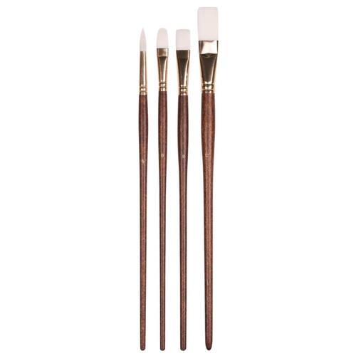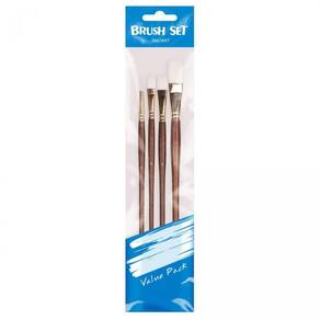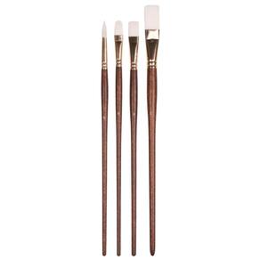 Conjunto De Pinceis Misto Longo Sintéticos Sinoart Com 4 Unidades Conjunto de Pincéis Sinoart composto por 4 pincéis de cerda sintética branca e cabo longo de madeira, indicado para diversas técnicas de pintura artística, como pintura em tela, aquarela, pintura em madeira, cerâmica entre outras técnicas. Sua cerda sintética foi especialmente elaborada para permitir o uso com tinta a base de água e base solvente. Conjunto composto pelos seguintes pincéis: 1 Formato chato n°81, 1 Formato chato n°121, 1 Formato redondo n°61, 1 Formato língua de gato n°6 Medidas aproximadas do produto - Comprimento: 34 cm - Altura: 1 cm - Largura: 7 cm - Peso: 60 g Ean: 6924309022157