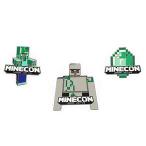 Conjunto de edição limitada de 3 pinos de Minecraft cada com a palavra minecon em (e em Letras menores embaixo "Londres de julho de 4 – 5 "). Se você estivesse um minecon participantes, você tem um pino Fourth em sua bolsa para completar sua coleção.
