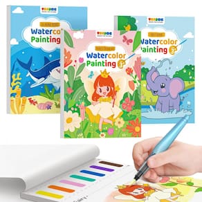 Nossa série de livros infantis em aquarela, incluindo floresta, oceano, dinossauro e princesa, cria um mundo de imaginação ilimitada para as crianças desenharem. Cada livro de aquarela contém 14 cenas infantis projetadas especificamente para crianças, usando dinossauros, animais da floresta, animais marinhos e princesas para criar cenas coloridas. Com muitas tintas líquidas de aquarela para crianças e criatividade ilimitada, seu filho pode liberar seu potencial artístico sem se preocupar com a perda de cor. Camadas espessas estendidas de tintas de aquarela para crianças aumentam a força das mãos, percepção visual e habilidades de aderência precisa. Ideal para crianças de 4 a 10 anos, este conjunto de livros em aquarela é um ótimo presente para aniversários ou ocasiões especiais. Cada traço é a exploração e expressão de uma criança do mundo bonito, permitindo que sua criatividade e imaginação voem livremente na tela colorida. Escolha nosso conjunto de tinta aquarela infantil e comece esta jornada de pintura sonhadora entrelaçada com seu filho, para que todos os dias da infância sejam cheios de cores e sonhos! - Três séries, aproveite tudo em um conjunto: design exclusivo, estilo e tema de pintura bonito e interessante, existem animais da floresta, dinossauros, oceanos, séries de princesas para você escolher, experimente a diversão de pintar com seus filhos e desbloquear uma infância feliz. Basta mergulhar o pincel em água e aplicar tinta para colorir facilmente. - Rica em pigmentos, criatividade ilimitada: cada página tem uma camada espessa, flexível e segura de tinta aquarela, e também inclui 1 papel de tinta extra, permitindo que as crianças libertem totalmente sua imaginação sem se preocupar em ficar sem tinta. - Variedade de pincéis, controle sem esforço: cada conjunto de aquarela infantil inclui 3 pincéis de água e 3 pincéis. Projetado para mãos pequenas, este conjunto garante que seu filho possa pintar e aproveitar facilmente o processo criativo, mesmo ao compartilhar com amigos. - Papel grosso de qualidade: Nosso papel de alta qualidade evita que a tinta vaze. As páginas rasgam facilmente ao longo da linha de perfuração, permitindo pintar e preservar suas criações amadas. - Presentes de arte e artesanato: Nossos livros infantis de pintura em aquarela são os melhores brinquedos criativos para 4 5 6 7 8 anos de idade. Ideal para aniversários, presentes de sala de aula, atividades de viagem, Páscoa, Ação de Graças e Natal.
