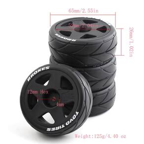 Atributos do produto: 100% novo Feito de materiais de alta qualidade, é mais leve, tem uma aparência mais nova e tem mobilidade mais forte. Nome do produto: 1/10 Rally rc pneus de carro e aros de roda Quantidade: 4 peças Material do aro: plástico Material do pneu: borracha Diâmetro externo do pneu: 65mm Largura do pneu: 25 mm Hexágono de acionamento: 12 mm Peso do item: 31g/pc ?? Lista de produtos (de acordo com sua escolha): 4 peças x pneus e rodas (anel de esponja embutido) ?? Precauções: Antes de usar, você precisa colar os pneus com cola. Alguns produtos são equipados com duas decorações de pastilhas de freio, que podem ser combinadas nas rodas de acordo com o humor. - Este tipo de cubo de aro é feito de materiais de alta qualidade. Estes pneus são compostos de inserções de borracha macia, plástico e espuma. Materiais ecológicos e resistentes tornam este pneu mais prático. - ? Várias rodas com pisada na forma de flechas estão sempre disponíveis para os jogadores escolherem seus pneus favoritos. Pneus leves e resistentes podem fornecer ao veículo uma excelente capacidade de derrapagem, e o desempenho da velocidade também foi efetivamente melhorado. O anel de esponja embutido tem forte absorção de choque e excelente resistência ao desgaste, o que efetivamente alivia a vibração do carro devido à superfície irregular da estrada. - Fácil de instalar e remover. A característica deste pneu é que o design é razoável, o modelo é perfeitamente compatível e pode substituir as peças autênticos e melhorar o desempenho dos pneus de automóveis. - Adequado para: carro de corrida 1/10 On Road / rally rc. Por exemplo, HPI Ken Block/Tamiya XV01TT01TT02B/Kyosho Phaser MK2/Lc Racing PTG/HSP94118/RGT WRC/3RACING D5 e assim por diante. - Se você não estiver completamente satisfeito com nossos produtos, não hesite em entrar em contato conosco para um reembolso ou troca! Sua satisfação é nossa maior prioridade.