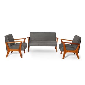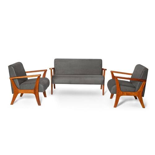 Sua base e braços são confeccionados em Madeira Maciça Lyptus Grandis, proveniente de , com acabamento em selador nogueira fosco. Seu assento e encosto são produzidos em tecido Suede Veludo, dando um toque suave e macio ao móvel, com espuma certificada densidade (D28) e percinta elástica, matérias-primas que garantem maior resistência e durabilidade ao produto. Além de contar com sapatas plásticas, ideal para a proteção do piso contra riscos.