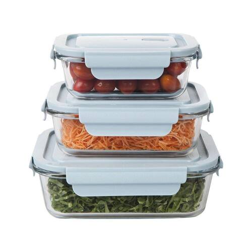 Conjunto De Potes De Vidro Hermético 3 Pçs Azul - Jgti042