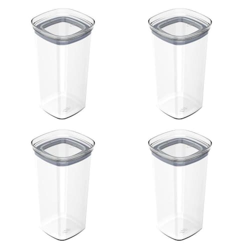 Conjunto de Potes Herméticos 1,5 L 4 Peças Block Modular Transparente OuO Conjunto De Potes Herméticos Block Modular 4 Peças é perfeito para auxiliar na organização da sua casa, pois armazena diferentes tipos de alimentos secos. Empilhe, encaixe e enxergue facilmente o conteúdo, mantendo tudo em ordem. Seu design foi pensado para que os potes sejam empilhados e facilmente abertos, com cantos arredondados que proporcionam uma pega confortável e ergonômica. Além de possuir anel de vedação feito em silicone com tecnologia que permite abertura suave e vedação perfeita.