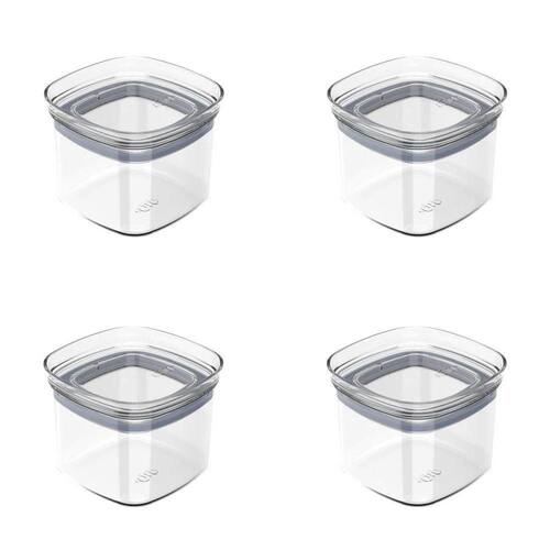 Conjunto de Potes Herméticos 450 ml 4 Peças Block Modular Transparente OuO Conjunto De Potes Herméticos Block Modular 4 Peças é perfeito para auxiliar na organização da sua casa, pois armazena diferentes tipos de alimentos secos. Empilhe, encaixe e enxergue facilmente o conteúdo, mantendo tudo em ordem. Seu design foi pensado para que os potes sejam empilhados e facilmente abertos, com cantos arredondados que proporcionam uma pega confortável e ergonômica. Além de possuir anel de vedação feito em silicone com tecnologia que permite abertura suave e vedação perfeita.