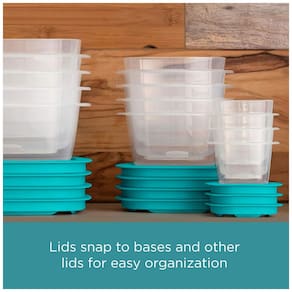 NÃO MAIS TAMPAS PERDIDAS Recipientes de plástico com tampas Easy Find se encaixam na base, assim como em outras tampas do mesmo tamanho, para que você sempre possa encontrar tampas quando precisar eles são ideais para organizar sua cozinha TAMPAS À PROVA DE VAZAMENTO COM JANELA CLEAR VIEW As tampas flexíveis e à prova de vazamentos são fáceis de fechar e abrir além disso, as tampas de visão clara tornam mais fácil ver o que está dentro ÓTIMO PARA PREPARO DE REFEIÇÕES E MAIS Os recipientes de alimentos Easy Find Lids são ótimos recipientes de preparação de refeições eles também são ideais para sobras, zenamento de gabinete e muito mais CUIDADO FÁCIL E DURÁVEL Adequado para freezer, rack para lava louças e base para micro ondas para reaquecimento sem tampa LIVRE DE BPA Os recipientes de plástico são livres de BPA e feitos nos EUA com plástico não tóxico CAPACIDADE DOS POTES 6 de 120 ml, 5 de 300 ml, 5 de 480 ml, 1 de 1,2 mL Marca: Não Informado