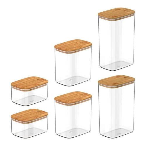 Conjunto de Potes Herméticos Retangular Keep 6 Peças Transparente com Tampa de Bambu Ou - Na sua casa