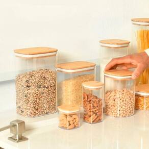 Conjunto de Potes Herméticos Retangular Keep 6 Peças Transparente com Tampa de Bambu OuOs Potes Herméticos Keep garantem organização e cuidado para os seus alimentos, trazendo mais tranquilidade e bem-estar para a sua rotina. A tampa de bambu promove a sustentabilidade de um material 100% renovável, e traz sofisticação para decorar a sua casa.
