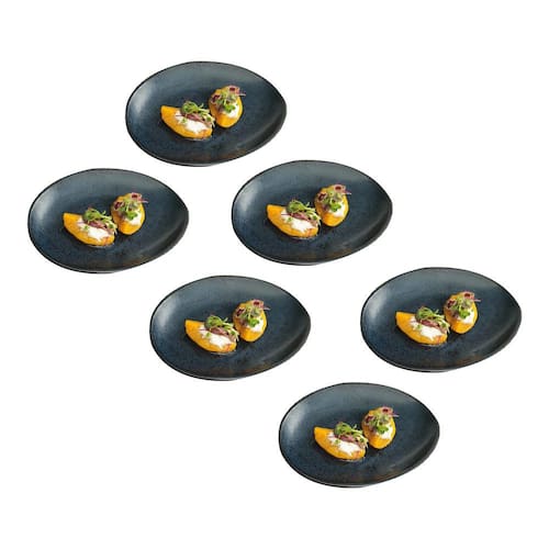Avant Garde: uma coleção Porto Brasil O Conjunto de Pratos de Sobremesa Ovais Porto Brasil com 6 peças é a escolha ideal para quem procura cerâmica de alta qualidade, sem abrir mão de um visual deslumbrante. Tudo isso, finalizado em esmalte reagente na belíssima estampa Orgânico Night Blue.