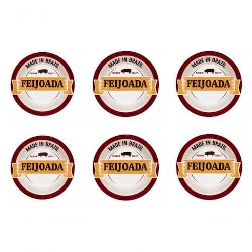 Conjunto De Pratos Fundo De Porcelana Feijoada Premium 6pçs - Conjunto de Pratos Fundo de Porcelana Feijoada Premium 6pçs - Se tem um prato que representa muito o Brasil esse prato é, com certeza, a feijoada. O nosso tradicional guisado de feijão com carnes é praticamente unanimidade aqui e até mesmo em outros países. O prato Feijoada Premium foi desenvolvido especialmente para a degustação dessa iguaria. E o principal são resistente a micro-ondas, e resistente a lava-louças. Contéudo: 06un. Pratos Fundo - 23cm; Material: Porcelana; Cor: Estampado - Amarela e Marrom; Fabricante: . meli_shipping_mode - Sim Fabricante - Modelo - JM14-6797