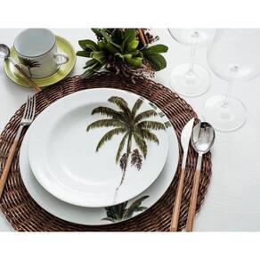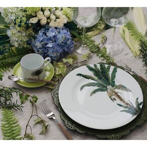 A leveza e delicadeza da natureza posta a mesa. A decoração Palmeiras traz 6 desenhos diferentes desta árvore que é a cara do Brasil. A decoração tropical assinada pintora brasileira Lelli de Orleans e Bragança.