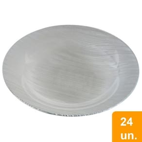 Características Gerais Descrição do produto Prato Fundo Diamante Nadir - Emb. c/ 24 Un. Conteúdo da embalagem 24 un. Composição/Material Vidro Temperado Cor/Acabamento Diamante Capacidade (ml) - Dimensões cm (øxA) 22,4x3,14 Peso do Produto aproximadamente (Kg) 0,370 Limpeza Lave o seu produto com cuidado, evitando o uso de abrasivos, como palha de aço ou saponáceo. Evite riscá-lo com utensílios pontiagudos. SAC Fornecedor Fornecedor Nadir SAC