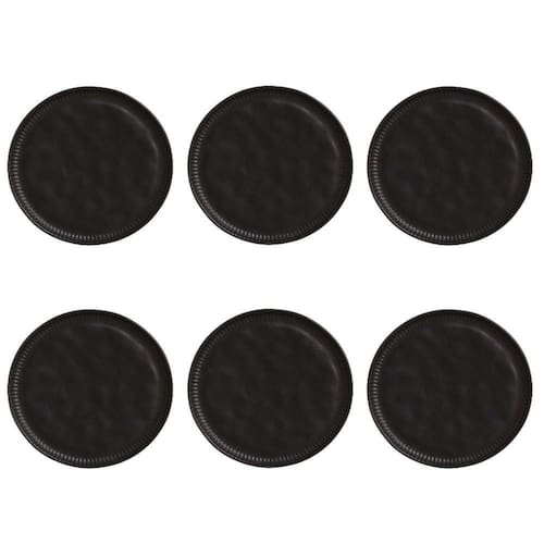 Conjunto de Pratos Rasos 06 Peças Linhas Preto Matte Porto Brasil - Incluso