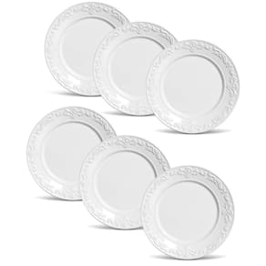 Conjunto de Pratos Rasos Porto Brasil Acanthus em Faiança Feldspática Branco - 6 Peças