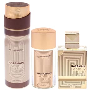 Al Haramain Amber Oud Gold Edition Extreme Conjunto de presente de 3 peças - Colônia de luxo unissex - Perfume para homens e mulheres - Spray EDP de 70 g, spray EDP de 28 g, spray corporal de 187 g