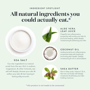 - AME, AME, AME OS RESULTADOS: Diga olá à pele macia do bebê e adeus à pele seca e com coceira com nossa linha esfoliante! Nosso esfoliante ultrafino com sal marinho esfolia suavemente as células mortas da pele, óleos, sujeira e outras impurezas para uma pele brilhante e radiante!