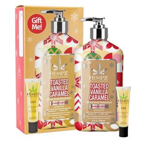 Hempz Conjunto de presente de caramelo de baunilha torrada, loção corporal e protetor labial, para homens e mulheres