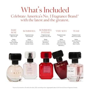 Siga o desejo do seu coração. Descubra sua fragrância favorita com este conjunto selecionado de mini eau de parfums, agora em embalagem em formato de coração de edição limitada. A maneira perfeita de presentear você ou alguém especial com um novo aroma característico neste Dia dos Namorados. Eau de Parfum é a nossa versão mais concentrada e pura da fragrância de 7,5 ml. Doméstico Neste conjunto: Bombshell Eau de Parfum Tipo de fragrância: Fruity Floral Notas: maracujá roxo, peônia Shangri-La, orquídea baunilha Bombshell Intense Eau de Parfum Tipo de fragrância: Chypre Frutado Notas florais: cereja exuberante, peônia vermelha, baunilha sensual Tease Eau de Parfum Tipo de fragrância: quente Gourmand Notas: gardênia branca, Anjj ou pera, baunilha preta Eau de Parfum Very Sexy Tipo de fragrância: Notas quentes: orquídea baunilha, clementina ensolarada, amora-preta selvagem Bare Rose Eau de Parfum Tipo de fragrância: floral quente: pele de pera, rosa Centifolia, madeiras transparentes