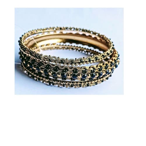 Conjunto de Pulseiras Indiana Tradicional Dourada e Preta