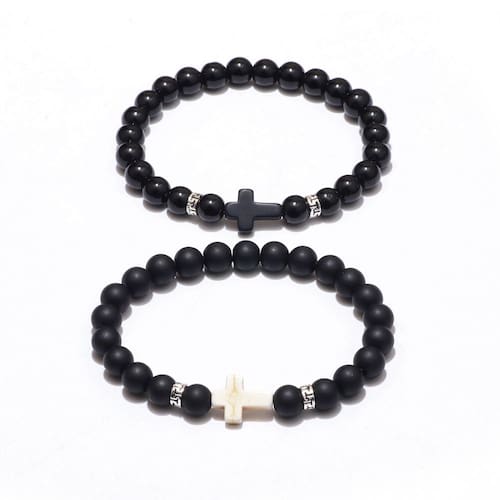 Tamanho: Diâmetro do cordão 8 mm Peso: 38 g Material: Conjunto de design ObsidianCouples — Inclui duas pulseiras de miçangas combinando: uma com cruz preta, outra com cruz branca, perfeitas para casais ou companheiros próximos. Miçangas de obsidiana natural — Feitas com pedras de obsidiana foscas de 8 mm, oferecendo energia de base e uma aparência elegante e minimalista. Acentos inspirados na fé — Cada pulseira é centralizada com um pingente cruzado, simbolizando conexão espiritual, proteção e crença compartilhada. Ajuste elástico confortável — O design do cordão elástico se adapta facilmente à maioria dos tamanhos de pulso, proporcionando um ajuste confortável e confortável para uso diário. Estética rústica e moderna — O acabamento fosco com espaçadores prateados de estilo antigo oferece uma mistura de estilo vintage e contemporâneo para homens e mulheres.