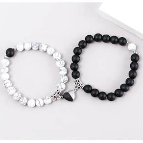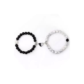 Las pulseras estan hechas de piedras les genuinas, Howlita, que ativa a eliminação de água e ajuda na fase de desgaseificação. Muito eficaz para melhorar a elasticidade da pele, para dispersar as energias negativas e dar estabilidade e confiança em si mesmo. Agate Black (Black Onyx) promove a estabilidade emocional e a harmonia, absorve e previne a depressão. *o valor inclui ambos os pulserasPulseras para parejas les Howlita MagnéticaAjustable de 18 CM a 26 cm, adequado para homem e mulher.