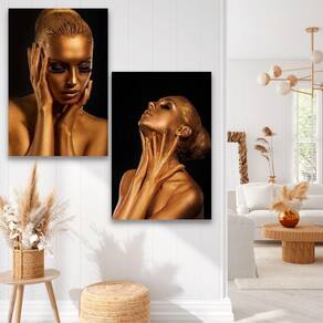 Conjunto De Quadros Dupla Mulheres Douradas Conjunto de Quadros Dupla Mulheres Douradas G (118 x 78) - Qualidade Premium (padrão museu)