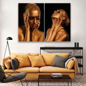 Conjunto De Quadros Dupla Mulheres Douradas Conjunto de Quadros Dupla Mulheres Douradas GG (150 x 100) - Qualidade Premium (padrão museu)