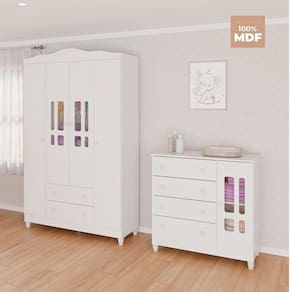 Quer manter o quarto do seu baby organizado, mantendo o estilo de conforto e delicado do quarto? Então você achou o que procurava. A Carolina Baby desenvolveu o Guarda-Roupa Ariel 4 portas pensando em você e no seu bebê. Ele foi desenvolvido com o corpo em MDP, com as portas e gavetas em MDF de alta resistência mecânica, que permite que as gavetas tenham movimentos de abrir e fechar mais suaves sobre as corrediças metálicas. Altura do Conjunto: 198 cm Ambiente Principal: Quarto de Bebê codigo_ean: 7900288062529 Cor: Branco Cor do Produto: Branco Informação Complementar: 1x Cômoda Infantil 1 Porta 4 Gavetas Ariel Branco Largura: 95 cm Altura: 92 cm Peso: 25 kg Profundidade: 40 cm Necessita Montagem: Sim