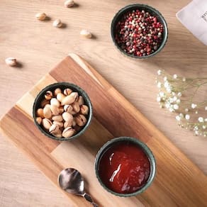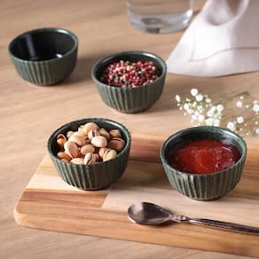 Qualidade e Sustentabilidade O Conjunto de Ramequins Linhas Greenery da Porto Brasil é confeccionado em stoneware, um material cerâmico de alta resistência e qualidade, semelhante à porcelana. Feitas com matérias-primas naturais e acabamento manual exclusivo, as peças possuem um design autêntico com variações de formas, relevos e tons de verde, que evidenciam a originalidade e elegância do conjunto.