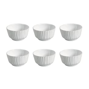 Elegância Versátil para Qualquer Ocasião Com dimensões de 9 cm de diâmetro, 5 cm de altura e capacidade de 170 ml, os ramequins são ideais para porções individuais, como sobremesas ou acompanhamentos. Sua cor branca e acabamento refinado em esmalte proporcionam um toque de elegância, tornando o conjunto uma escolha prática e sofisticada para embelezar a mesa em qualquer evento ou no dia a dia.
