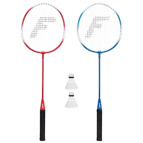 Conjunto Franklin Sports Badminton Racket + Birdie - Equipamento de badminton de reposição para crianças e adultos - Conjunto de raquetes de badminton para 2 jogadores, vermelho/branco/azul