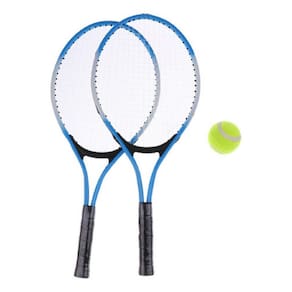 Ótimo presente para seus filhos melhorarem suas habilidades no tênis. Características Este conjunto de tênis inclui duas peças de raquetes de tênis, uma bola de tênis e uma bolsa transparente. Material: liga de ferro\ nCor: vermelho e azul\ nTamanho: 52 cm * 22 cm * 8 polegadas Peso: 205 gr\ nDiâmetro da bola: 6,1 cm/2,4 polegadas\ nPeso da bola: 61 gr\ nTamanho da embalagem: 54 cm * 23 cm * 3 cm\ nPeso da embalagem: 586 grCor\ nAzul