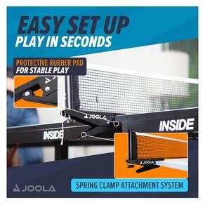 IMAGENS MERAMENTE ILUSTRATIVAS Cor: Azul Marinho Suporte preto O conjunto de suporte e rede de tênis de mesa JOOLA Inside é ótimo para jogadores que procuram uma rede de tênis de mesa ajustável, resistente e a um preço excelente. Com um sistema de "clip" de fácil fixação, se encaixa na maioria das mesas de tênis de mesa de tamanho padrão, com até 38mm de espessura. A montagem é rápida Ean: 4002560315804
