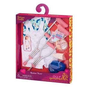 Conjunto de roupa com muletas para bonecas de 46 cm, para ficarem fofas durante a recuperação. As bonecas Our Generation estão sempre em movimento e uma coisinha como uma simples perna quebrada não pode impedi-las! Todo mundo precisa de cuidado e carinho e essa roupinha tem tudo o que é preciso para cuidar muito bem das bonecas. Inclui um macacão branco super fofo e uma camiseta com estampa divertida, além de um par de sapatos e curativos coloridos para cuidar do dodói da boneca. Boneca vendida separadamente.