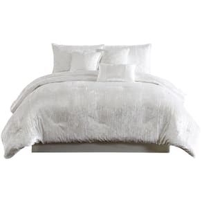 Conjunto de edredom queen size Benjara Jay de 7 peças, textura de luxo de veludo de poliéster branco