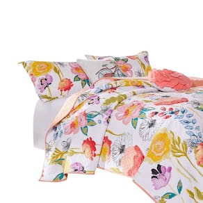 Conjunto de edredões duplos reversíveis Benjara Mavi de 4 peças, estampa floral de primavera, multicolorido