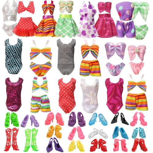 ? Liberte a imaginação do seu filho com nosso conjunto definitivo de roupas e acessórios para bonecas! Embalado com 70 surpresas, esta caixa de presente é o sonho de todos os amantes de bonecas. ? De sapatos de boneca elegantes a vestidos modernos, vestidos elegantes e trajes de banho fofos, nosso conjunto tem tudo. Os materiais de qualidade premium, incluindo cetim, renda, seda e tule, garantem durabilidade e um visual luxuoso. ?Vestir e despir as bonecas é muito fácil graças ao design autoadesivo na parte de trás de cada roupa. É o presente perfeito para aniversários, Natal ou qualquer ocasião especial. Encante seus pequenos com este lindo pacote fashion de boneca. Agora, deixe a aventura começar! ? (Observação: os vestidos deste conjunto são selecionados aleatoriamente, garantindo surpresa e emoção. Os estilos são atualizados regularmente, garantindo uma coleção nova e diversificada.) - Com 70 surpresas em um presente: 70 roupas e acessórios de boneca = 6 maiôs de biquíni aleatoriamente + 5 vestidos de biquíni aleatórios + 5 maiôs de biquíni aleatórios + 5 maiôs triângulos de biquíni aleatórios + 4 conjuntos de biquíni aleatórios + 50 pares de sapatos de boneca. Adequado para bonecas de 28 a 30 cm. - Qualidade premium: estas roupas e acessórios de boneca são feitos de material de alta qualidade, incluindo cetim, renda, seda e tule. O artesanato requintado torna nossas roupas de boa qualidade, duráveis e exclusivas. Além disso, nossas roupas e acessórios são seguros e não tóxicos, adequados para as crianças brincarem. - Design exclusivo: vem com uma ampla variedade de roupas e acessórios de grande escala que melhoram as ideias de contar histórias, inspirando criatividade e aventura. Todos os vestidos de boneca são fáceis de colocar e tirar, porque a parte traseira é projetada com fecho aderente, o que pode tornar mais fácil para suas meninas trocarem as roupas da boneca e mostrar o charme da boneca. - Presente perfeito para todas as ocasiões: seja um aniversário, Natal ou apenas uma festa, nossa bolsa fashion de boneca é o presente perfeito. É embalado em uma caixa lindamente projetada e pronto para ser dado como um presente especial. Pode ser armazenado rapidamente e é adequado para transporte. - Observação: todos são de estilo aleatório e as roupas serão selecionadas do inventário existente. As imagens são apenas parte do show. Vendemos apenas vestidos e acessórios. A boneca é apenas um modelo e não está incluída no pacote.