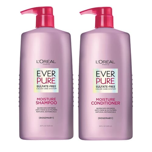 Conjunto de shampoo e condicionador L'Oreal Paris EverPure Moisture, cuidado capilar para cabelos tingidos com vegetais de alecrim, 1 kit