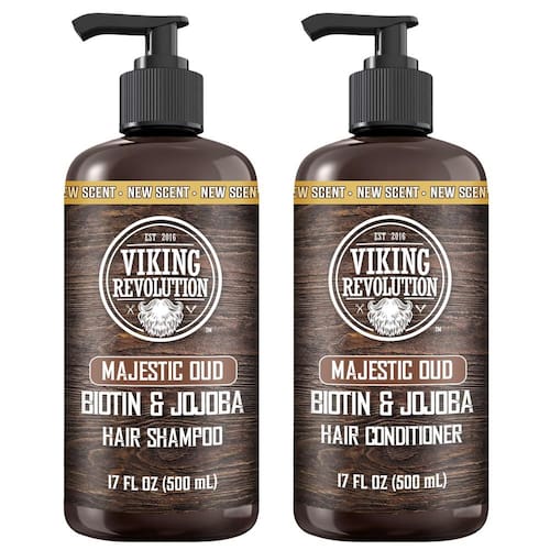 Conjunto de xampu e condicionador masculino Viking Revolution Majestic Oud com biotina e óleo de jojoba - Xampu e condicionador de cabelo naturais para homens com vitamina B5 - Shampoo masculino para cabelos finos (17 onças)