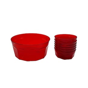 1 vasilha oitavada g, com 22 cm de diâmetro por 10 cm de altura. 6 vasilha oitvadas p, com 11 cm de diâmetro por 5 cm de altura. Tipo de utensílio: conjunto de sobremesa dehaus material: polipropileno