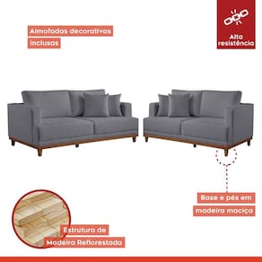 Apresentamos o conjunto de sofá M175, composto por um sofá de 2 lugares e outro de 3 lugares, uma combinação perfeita de conforto e estilo para sua sala de estar. Com seu design elegante e contemporâneo, estes sofás se destacam pela sua durabilidade e funcionalidade. Seus assentos e almofadas macias proporcionam o máximo de conforto, enquanto sua estrutura robusta garante estabilidade. O conjunto M175 é ideal para famílias e espaços de entretenimento, oferecendo um ambiente acolhedor e convidativo para momentos inesquecíveis com amigos e familiares. Eleve o nível de conforto e estilo em sua casa com o conjunto de sofá M175. Acompanha Almofadas extras: 04 Almofada do assento: Fixa Almofada do encosto: Removível Altura do assento até o chão: 47 Altura do Encosto: 32 Altura dos Pés: 10 Ambiente Principal: Sala de Estar Cor: Cinza Escuro Cor do Produto: Cinza Escuro Densidade do Assento: D-28 Densidade do Encosto: D-18 Enchimento do Assento: Espuma Enchimento do Encosto: Fibra Siliconada Estilo de Braço: Braços Quadrados Firmeza do Assento: Firme Informações Complementares: * Encosto fixo 100% fibras de silicone Itens Inclusos: 1 conjunto com 2 sofás. Largura do Sofá Maior: 190 Material dos Pés: Madeira Necessita Montagem: Não Origem do Produto: Nacional Peso: 110 Pet Friendly: Não Possui Percintas Elásticas: Sim Possui Pés: 10 Possui Rodízio: Não Quantidade de Itens: 2 Recomendações de Uso, Manutenção e Limpeza: Não expor diretamente à luz do sol e à umidade; Resistente à Chuva: Não Revestimento do Braço: Veludo Suporta Até (kg): 150 Tecido Predominante: Linho Tipo de Encosto: Fixo Tipo de Mola: Molas Bonnel Marca: Estofados Martins
