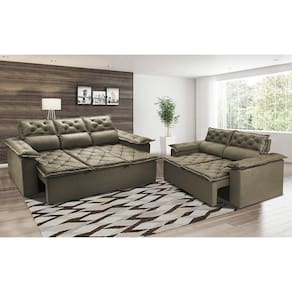 Conjunto De Sofá 3 E 2 Lugares Retrátil E Reclinável Cama Inbox Compact 2,00x1,50m Velusoft Castor