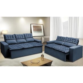 Conjunto De Sofá 3 E 2 Lugares Retrátil E Reclinável Cama Inbox Slim 2,00x1,50m Velusoft Azul