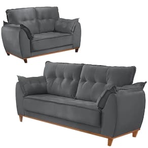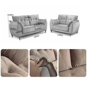 Conjunto de Sofá Espanha com 2 e 3 Lugares Tecido Veludo JC Estofados O Conjunto de Sofá Espanha com 2 e 3 Lugares Tecido Veludo JC Estofados é a escolha perfeita para quem busca unir conforto e elegância. O revestimento em veludo proporciona uma textura macia e agradável ao toque, além de um visual sofisticado que enriquece a decoração de qualquer sala de estar. Seu design clássico e atemporal garante que ele se adapte facilmente a diferentes estilos de ambiente, oferecendo o espaço ideal para relaxar e receber amigos e familiares com muito estilo.\nMEDIDAS\nAltura (Sofá 3 Lugares) 98 cm\nLargura (Sofá 3 Lugares) 197 cm\nProfundidade (Sofá 3 Lugares) 80 cm\nAltura (Sofá 2 Lugares) 98 cm\nLargura (Sofá 2 Lugares) 147 cm\nProfundidade (Sofá 2 Lugares) 80 cm\nCARACTERÍSTICAS\nFabricante JC Estofados\nModelo Conjunto de Sofá Espanha\nGarantia 3 meses\nTipo de Produto Conjunto de Sofá 2 e 3 Lugares\nAmbiente Sala\nEstrutura Madeira de Eucalipto Reflorestado\nTecido Revestimento Veludo\nAssento Assento de 10cm com Espuma D28 e Percinta Elástica\nEncosto Almofadas Preenchidas com Fibra de Silicone\nMaterial Pés Madeira\nINFORMAÇÕES IMPORTANTES\nObjetos decorativos que porventura apareçam na foto, não acompanham o produto. Não nos responsabilizamos pela montagem/instalação dos produtos.\nMontagens, desmontagens e instalações são responsabilidades do cliente. Indicamos que contrate uma empresa de montagem ou um montador de sua confiança.\nAlém disso, favor verificar se os pés e acessórios estão dentro do forro inferior do produto. Em suma, todas as informações divulgadas sobre o produto são de responsabilidade do Fabricante.\nAs cores do produto podem variar de acordo com o seu monitor, a iluminação do ambiente em que você está e até mesmo a sua percepção visual. Além da cor, pequenos detalhes e acabamentos podem não ficar evidentes na foto, por isso as imagens são meramente ilustrativas.
