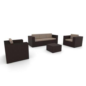 As almofadas de assento e encosto são em tecido impermeável de composição 72% algodão e 28% poliéster, bloqueia líquidos e poeiras, não sendo aconselhável a permanência em ambiente externo, expostos a intempéries climáticas (chuva).