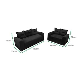 Conjunto de Sofá Porto com 2 e 3 Lugares Tecido Suede Felipe Estofados O Conjunto de Sofá Porto com 2 e 3 Lugares Tecido Suede Felipe Estofados é a escolha perfeita para quem busca conforto, estilo e praticidade na sala de estar. Revestido em tecido suede de toque macio e agradável, ele garante aconchego em todos os momentos de descanso, além de trazer um visual sofisticado e moderno para o ambiente. Seu design clean e versátil combina facilmente com diferentes estilos de decoração. Composto por um sofá de 2 lugares e outro de 3 lugares, o conjunto oferece amplo espaço para reunir família e amigos com muito mais conforto. As almofadas soltas e bem estruturadas proporcionam o apoio ideal para longas conversas, momentos de lazer ou simplesmente relaxar após um dia cansativo. Além disso, a estrutura reforçada garante resistência e durabilidade, sendo um investimento de longa vida útil para seu lar.\nMEDIDAS\nAltura (Sofá 3 Lugares) 72 cm\nLargura (Sofá 3 Lugares) 182 cm\nProfundidade (Sofá 3 Lugares) 65 cm\nAltura (Sofá 2 Lugares) 72 cm\nLargura (Sofá 2 Lugares) 132 cm\nProfundidade (Sofá 2 Lugares) 65 cm\nCARACTERÍSTICAS\nFabricante Felipe Estofados\nModelo Conjunto de Sofá Porto\nGarantia 3 meses\nTipo de Produto Conjunto de Sofá 2 e 3 Lugares\nAmbiente Sala\nEstrutura 100% em Madeira Maciça de Eucalipto\nTecido Revestimento Suede\nAssento Misto de Flocos de Espuma e Retalhos de Malha, sustentados por Percintas Elásticas\nEncosto Almofadas Preenchidas com Flocos de Espuma\nMaterial Pés PVC\nINFORMAÇÕES IMPORTANTES\nObjetos decorativos que porventura apareçam na foto, não acompanham o produto. Não nos responsabilizamos pela montagem/instalação dos produtos.\nMontagens, desmontagens e instalações são responsabilidades do cliente. Indicamos que contrate uma empresa de montagem ou um montador de sua confiança.\nAlém disso, favor verificar se os pés e acessórios estão dentro do forro inferior do produto. Em suma, todas as informações divulgadas sobre o produto são de responsabilidade do Fabricante.\nAs cores do produto podem variar de acordo com o seu monitor, a iluminação do ambiente em que você está e até mesmo a sua percepção visual. Além da cor, pequenos detalhes e acabamentos podem não ficar evidentes na foto, por isso as imagens são meramente ilustrativas.