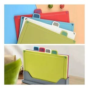 Design codificado por cores: cada tabela para cortar frutas de 30 cm x 20 cm/11,8 x 7,9 polegadas. O vermelho é para a carne, o azul para os peixes e os mariscos, o branco para os alimentos cocinados e o verde para os vegetais e frutas. Según la aplicación, pueden evitar la contaminación cruzada de los alimentos, ayudar a mantener el sabor de los alimentos y evitar que se mesclen los sabores cas por las tablas de picar que se mezclan al cortar los alimentos.Material seguro de calidad alimentaria, duradero: —— Tablero de polipropileno (PP), sin pigmento, insípido, pode estar em contato direto com alimentos, saudáveis, resistentes à corrosão, alta dureza. Os utensílios de cozinha são moderadamente brancos e duros, não se deformam e são resistentes a altas temperaturas. “Design antideslizante: o desenho da estrutura de pontos densos na parte posterior da mesa de corte aumenta o atrito entre a mesa de corte e a mesa da cozinha, o que a torna mais antideslizante e evita o movimento durante o uso. El diseño antideslizante de las tablas de cortar de plástico se adapta a la mayoría de las encimeras de la cocina.FÁCIL DE ARMAZENAR: el juego de tablas de cortar liviano y flexible tiene un estante de almacenamiento para 4 tablas de cortar. Depois de usar a tabela de corte, junte-a com água e colóquela na base do suporte para que seja seque e armazene. La rejilla de almacenamiento mantiene la tabla de cortar separada por circulación de aire, y la parte inferior de la rejilla de almacenamiento está equa con un filtro de agua para evitar que la tabla de cortar se enmohezca debido al agua acumulada.AGRADABLES ACCESORIOS DE COCINA: La resistente bandeja de comida triturada no tiene ranuras para ayudar a converter toda a comida triturada diretamente em um wok ou outro recipiente de forma rápida e sem resíduos. Esta mesa de corte de plástico vem com um suporte que não ocupará muito espaço na borda. Em artigos de cozinha diários, será um bom ajudante em sua cozinha.
