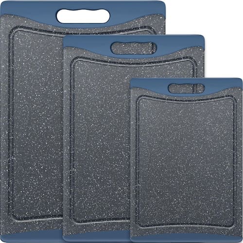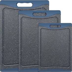 - ?Tudo em um conjunto?Nossas tábuas de corte de vários tamanhos podem melhorar sua eficiência na cozinha. Tamanho extra grande: 43 x 30 x 1 cm; Tamanho grande: 35 x 24 x 0,9 cm; Tamanho médio: 29 x 19,8 x 0,9 cm. Cada tamanho é projetado para um tipo de alimento e pode ser cortado separadamente. Perfeito para várias refeições ou uso durante todo o dia.